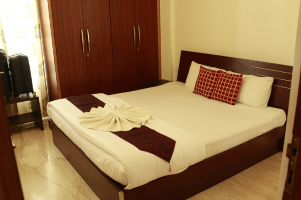 If you are looking for privacy, space and the warmth of your home, this apartment suite would be ideal for your stay. Comprising of Living, Dining , Kitchen & Utility, 2 Bedrooms with an attached Bathroom and a Balcony, this well appointed serviced apartment has considerably more space than any hotel suite. Equipped with LCD TV, AC, a fridge & an electric Kettle our 2 BHK serviced apartments are an ideal option for both medium and long term stays.Â